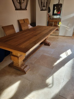 mesa de monasterio + 6 sillas de mimbre