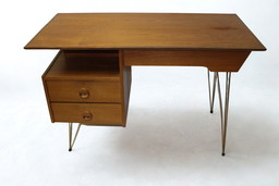 Escritorio de teca moderno de mediados de siglo: Louis Van Teeffelen para Wébé (década de 1950)