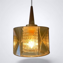 Lámpara colgante Carl Fagerlund de vidrio ámbar para Orrefors, años 60 - Escandinavo moderno