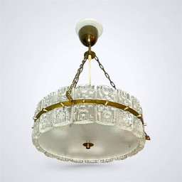 Lámpara de araña de latón y cristal de Carl Fagerlund para Orrefors, mediados de siglo, Suecia, década de 1960