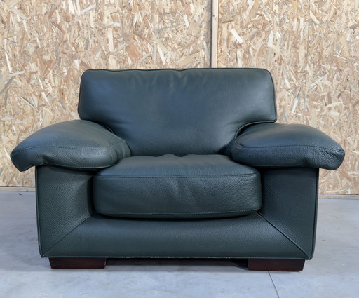 Sillón Roche Bobois Lounge en cuero patinado verde - circa 1970