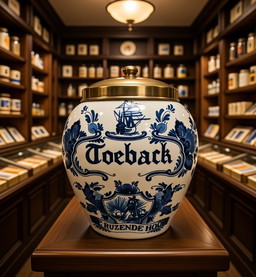 (W008) Tarro de tabaco azul de Delft Royal Goedewagen – Van Nelle “Rising Hope”