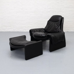 Sillón Vela Alta y otomana de cuero de Giovanni Offredi para Saporiti, Italy, años 70