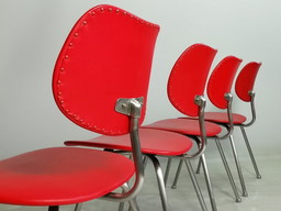 Juego de cuatro sillas de comedor vintage en terciopelo de Oswald Haerdtl para Ton, Checoslovaquia, década de 1950.