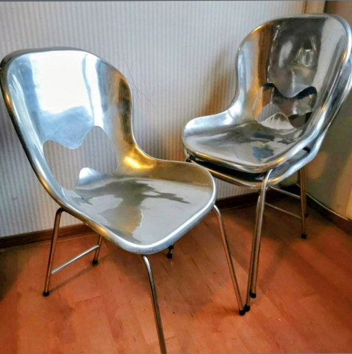 3 sillas de diseño Umbra de Karim Rashid, sillas de acero inoxidable y metal, sillas de comedor