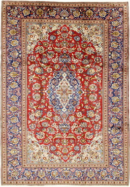 Alfombra persa original Keshan, roja de Kashan, 342 x 237 cm. En excelente estado. Clásica y antigua.