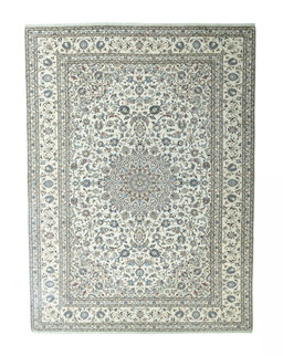 Alfombra oriental Nain 9 La anudada a mano con seda – 347 x 247 cm – Diseño elegante en azul y crema