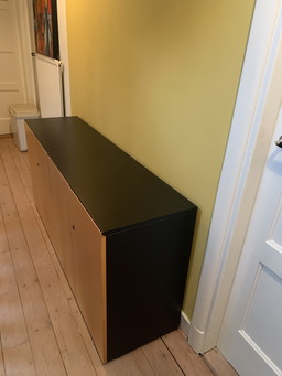 Pequeño armario con patas altas negras y 2 puertas