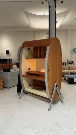 ¡Rareza! Armario de costura rodante vintage de los años 70 - tapa abatible, versátil, diseño de mediados de siglo.