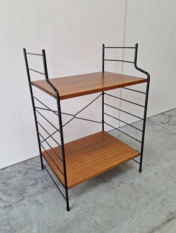 Estante de pared/librero vintage, metal y madera, Países Bajos Años 50