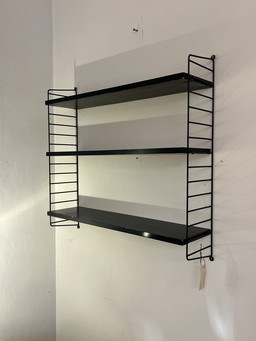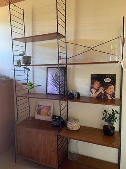Combinación de estantes, teca con tablero de fórmica negra, años 70