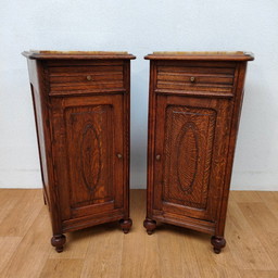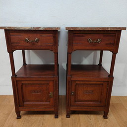 Pareja de mesillas de noche Art Nouveau con tapa de mármol de Paul Alexandre Dumas, Francia ca. 1910