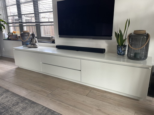 Mueble de TV blanco brillante | moderno | 240 cm de ancho
