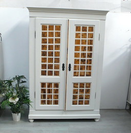Armario francés con patas de compás, 3 puertas, 1 espejo (27*130 cm) y 1 cajón