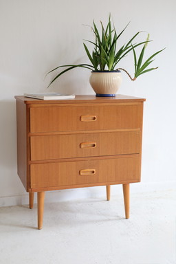 Cómoda antigua inglesa con 3 cajones del siglo XVIII (1750).