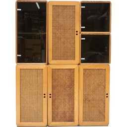 Aparador italiano vintage de madera de fresno y cristal, años 50