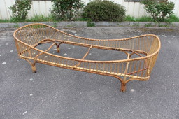 Hermoso y espacioso sofá cama vintage de ratán Foo Phing de los años 30