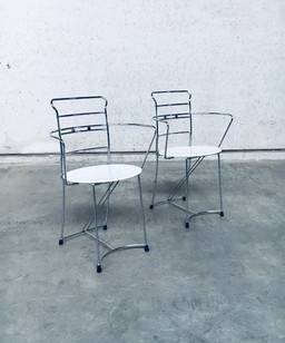 Conjunto de dos mesas auxiliares modernistas en travertino y cromo - años 70