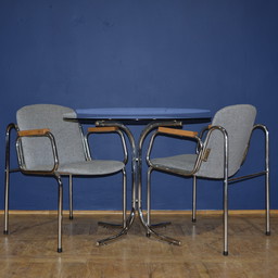 Mesa de centro de diseño de los años 70 en metal cromado y cristal ahumado