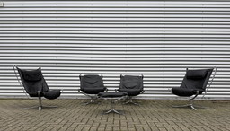 Vintage Mid-Century German Modern Minimalist Leather & Chrome Modular Sofa from Klöber, 1980s, Set of 4