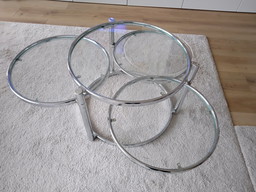 Mesas nido vintage, mesas auxiliares con tapas de cristal tintado cromado