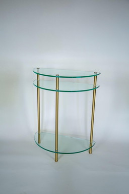 Mesa auxiliar italiana redonda de vidrio grueso con patas de latón