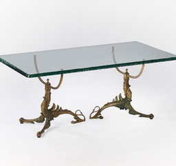 Mesa de centro vintage de cristal con escultural marco de cisne y tapa de cristal