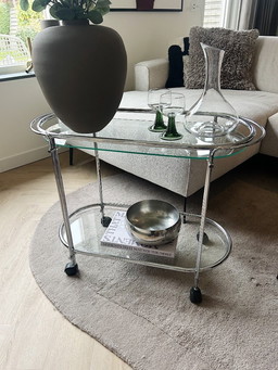 Carrito de servicio vintage con tapas de cristal ahumado