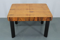 Mesa auxiliar Art Déco de madera de raíz con tablero de mármol