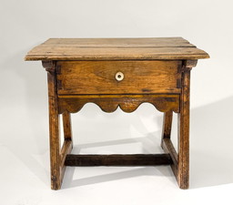 Mesa rústica francesa antigua de madera de olmo claro, siglo XIX