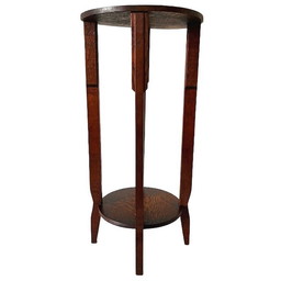 Mesa pedestal para plantas de color nogal clásico, dimensiones diámetro tablero 2 y 86cm de alto.