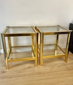 Pierangelo Galloti & Radice - 'T35' - Juego de 2 mesas auxiliares - vidrio - latón - Italia - Años 70