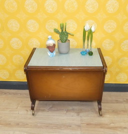 50er Jahre Nähkasten Kefer Kleinmöbel München Aufbewahrung auf Rollen Nähkorb Nähwagen sixties mid century retro vintage