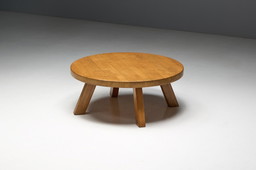 Mesa de centro Pierre Chapo, modelo T02M, en olmo macizo, Francia, 1976