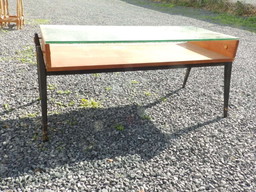 Mesa de centro escandinava de los años 60 con estante de paja de Viena