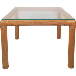 Mesa de centro vintage italiana de madera y cristal, años 70