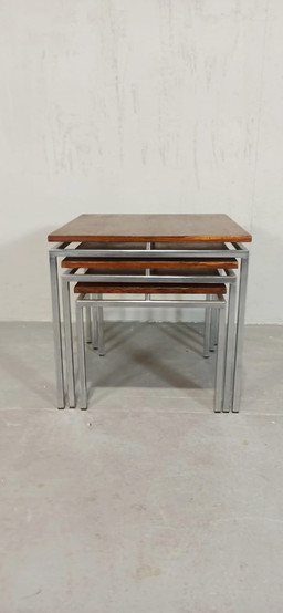 1 x juego de 2 mesas nido triangulares gallotti y radice. 1970's