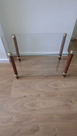 Mesa auxiliar rectangular italiana de latón, bambú y cristal ahumado, años 70