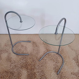 Mesa auxiliar de diseño - Estilo Eileen Gray - Metal - Vidrio - Años 80