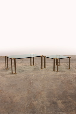 Gallotti & Radice T35 R Juego de mesa baja, Italia 1975, acero inoxidable + cristal
