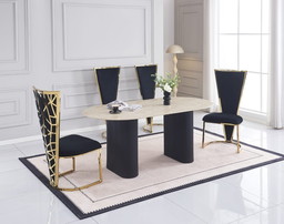 Mesa de comedor OLIVIA - Tablero efecto mármol y patas negras - 150 cm