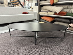 Mesa de centro RUBY - Base de metal negro y tablero de cerámica efecto travertino mate - Ø80/90 cm
