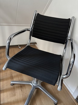 4 sillas con estructura tubular cromada y tapizado de pana negra