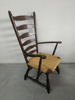 Sillón antiguo de nogal y caña de inspiración italiana de Gio Ponti