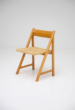 4x Juego de sillas de comedor de roble italiano con asientos de paja de Viena, años 70