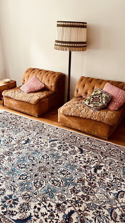 Sofá sistema Floyd-Hi – Silla Lemni – Mesas Grek – Lámpara Van Egmond – Aparador Gallery – Alfombra Caju