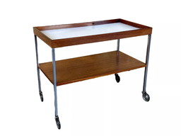 Carrito de servicio de los años 60 y 70, mesa auxiliar con ruedas, diseño moderno danés, Dinamarca