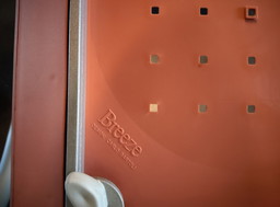 Sillón giratorio Goldsiegel. Naranja, recién tapizado.