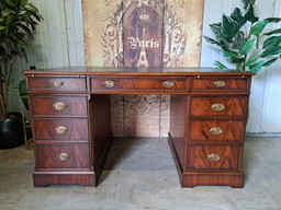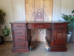 Escritorio clásico inglés de doble cara, mesa para escribir, mueble escritorio para socios dim.150x90cm y 80cm de alto.