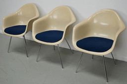 Par de sillas originales Vitra Eames del grupo de aluminio (EA 108), tapizadas en tela azul.